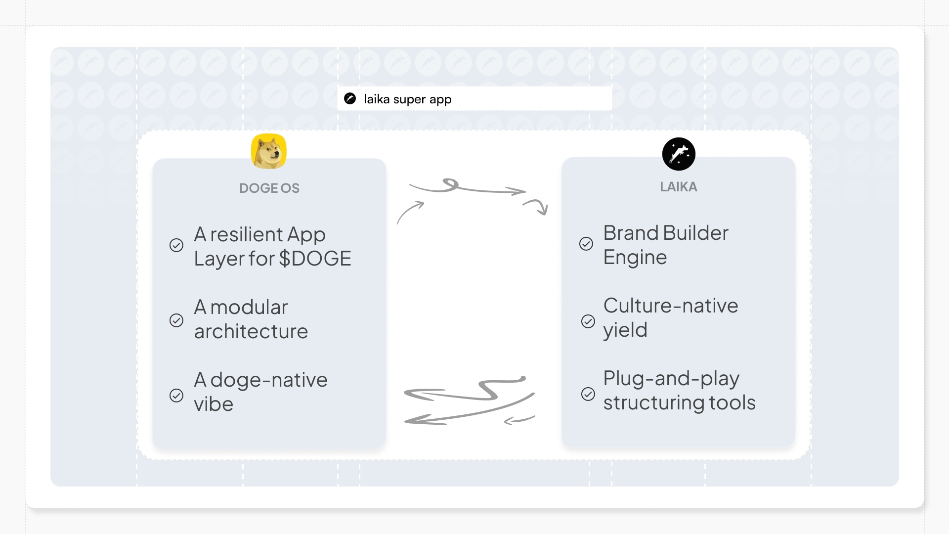 ↝ Laika Super App delivers the full economic stack for community tokens on DogeOS:
